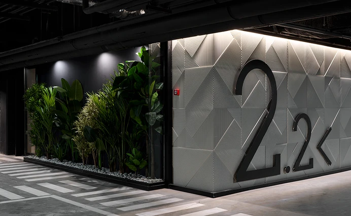 Мы мыслим паркинг как полноценную встречающую зону и пытаемся уйти от чисто утилитарного подхода, когда их проектируем. Для нас это не служебное помещение, здесь должно быть так же красиво и безопасно, как в подъезде. В интерьер паркинга квартала мы «впишем» световые ниши с растениями, декоративные перегородки для зонирования пространства. Стены и потолок окрасим в тёмный цвет, все инженерные коммуникации спрячем, сделаем навигацию с мягкой подсветкой значимых элементов — нумерации мест, входов в подъезды, выездов и ворот.