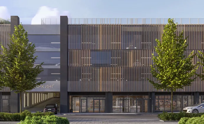 Наземный паркинг с ритейлом и эксплуатируемой кровлей
